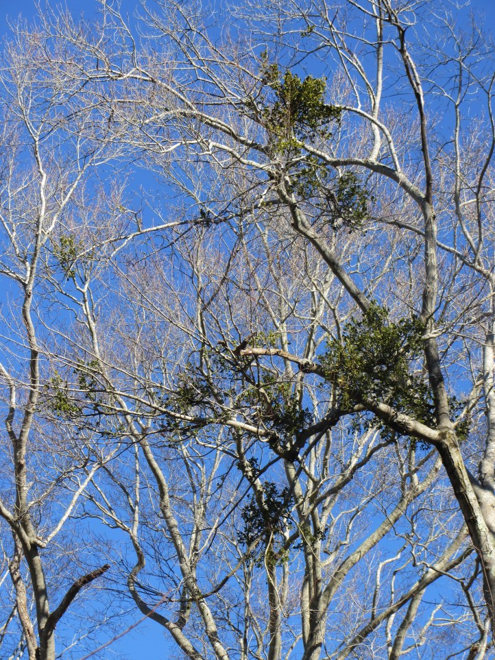 Evergreen trees like pines, cedars, other conifers, hollies and evergreen Magnolias not only sparkle and shine in winter sunlight, but also sweep many pounds of pollutants out of the air each year. Many of these hang onto individual leaves or scales for several years before replacing them and often grow relatively quickly. Even deciduous trees might host plants like mistletoe, which is evergreen and also absorbs carbon year round. It grows attached to a tree, but produces its own food like any other plant.