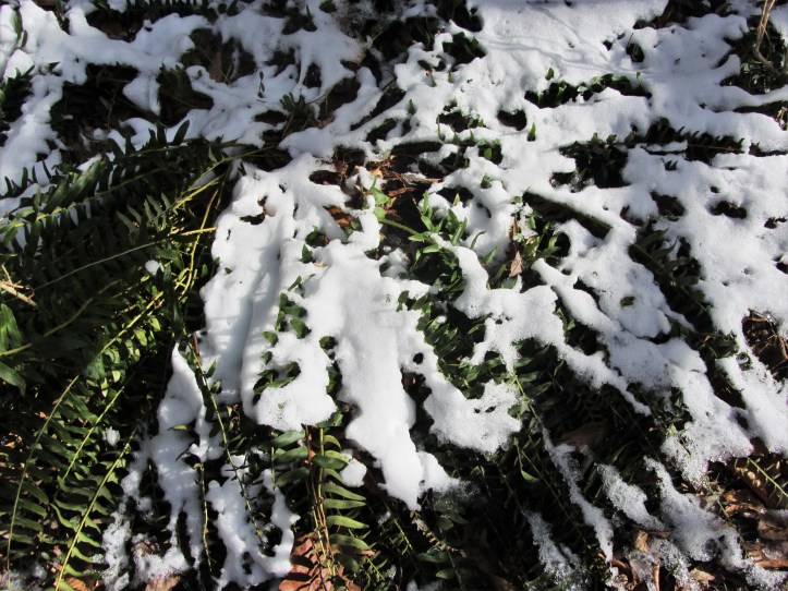 • Hi Scott, Some of the ferns stay flattened after the snow melts, but the D. ‘Brilliance’ usually pop back up nicely. It depends on how long the have they snow weighting them down. Italian Arum actually generates its own heat and melts the snow around it. They all have their ways to survive winter.