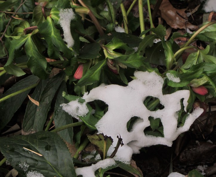 Cold settled across our garden this week, leaving ice in our pots and snow on the ground. It barely made it above freezing today, though the sun shone brightly and the wind had a rest. We expect snow again after midnight and tomorrow…. who knows how much or how long it will linger? We are tempted to surrender to winter.
