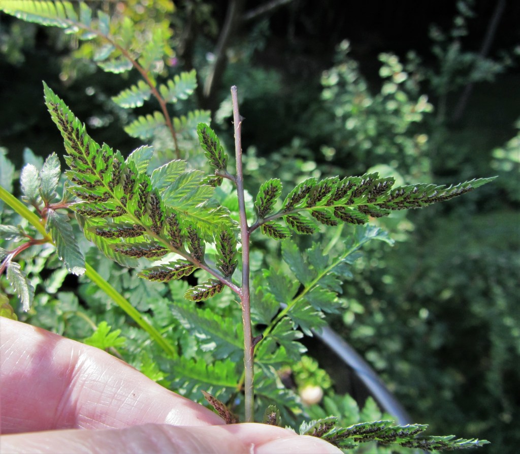 The gardener’s task is to learn to recognize when the sori ripen and collect a bit of fertile frond before the spore are released into the wild. In most species, but not all, the sori darken from green to brown before they open. Each genus has a slightly different timetable each year, so part of this art is to know when to collect a fertile frond to begin the propagation process.