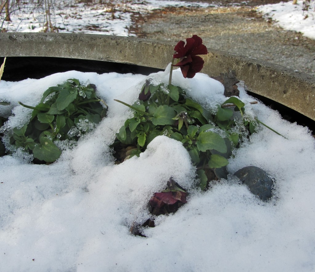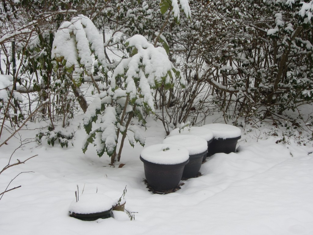 Four new pots freshly potted up with bulbs were soon under a snow mulch