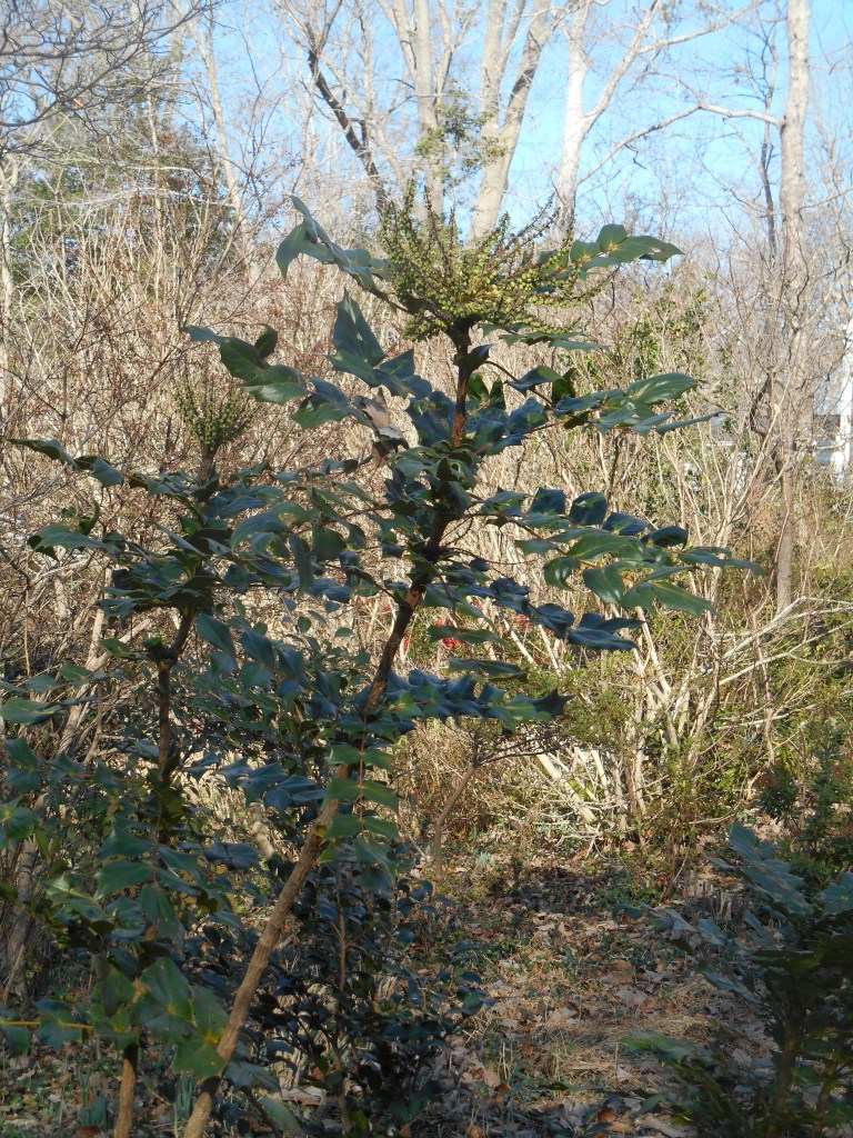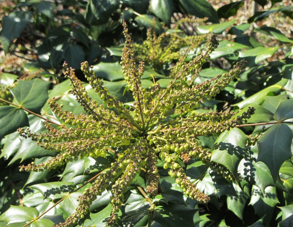 While deer may graze on holly, they don’t graze on Berberis aquifolium leaves. We have lost flowers to grazing deer, from time to time. Mahonia won’t attract hungry deer, and it can serve as a dense, sharp barrier to help fence them out.