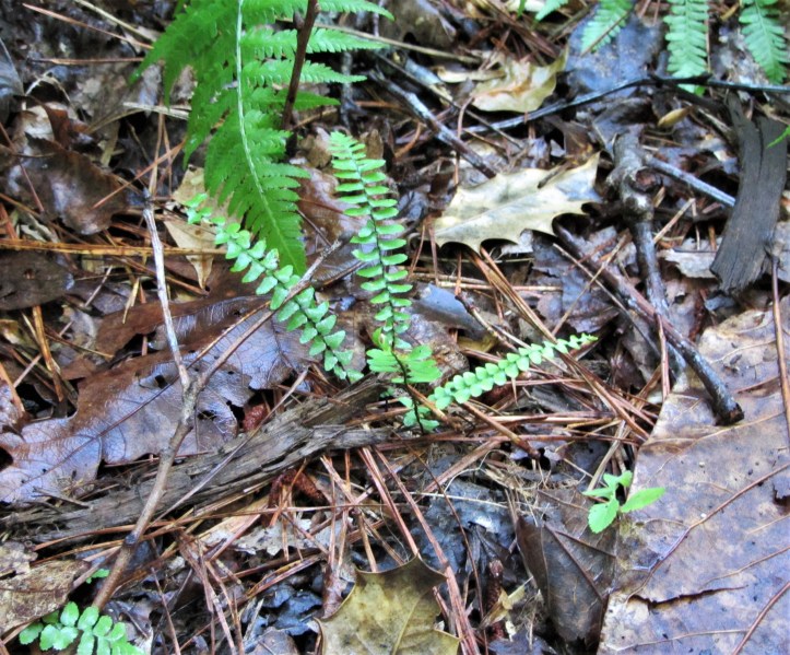 Fortune’s holly fern has a softer look with smaller, lighter colored pinna. It isn’t as leathery but has a beautifully dark rachis to contrast with the soft pinna. It resembles our Christmas fern in form, and it grow to about 30” tall. It is a forest fern, and can take some sun, if kept moist. Both holly ferns may naturalize. They aren’t invasive, don’t spread to form nearby clumps, and simply delight as good landscape plants year after year.