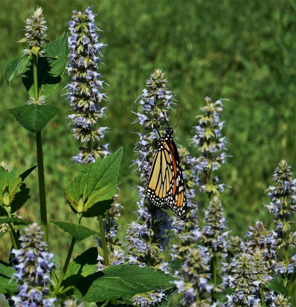 I never gave Agastache a second glance until one August morning in 2018 when we visited Brent and Becky Heath’s Gloucester display gardens. Their gardens were filled with every imaginable August blooming flower, but the butterflies were clustered on a few pots of blooming Agastache in their nursery area behind the shop. With 10 acres of delicious flowers to visit, we found the butterflies crowded together to sip from the few potted Agastache, in a puddle of sunshine on their patio. I watched in amazement as the butterflies bumped into one another to have a chance to sip this Agastache nectar.