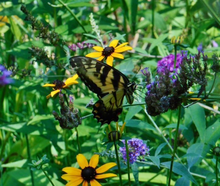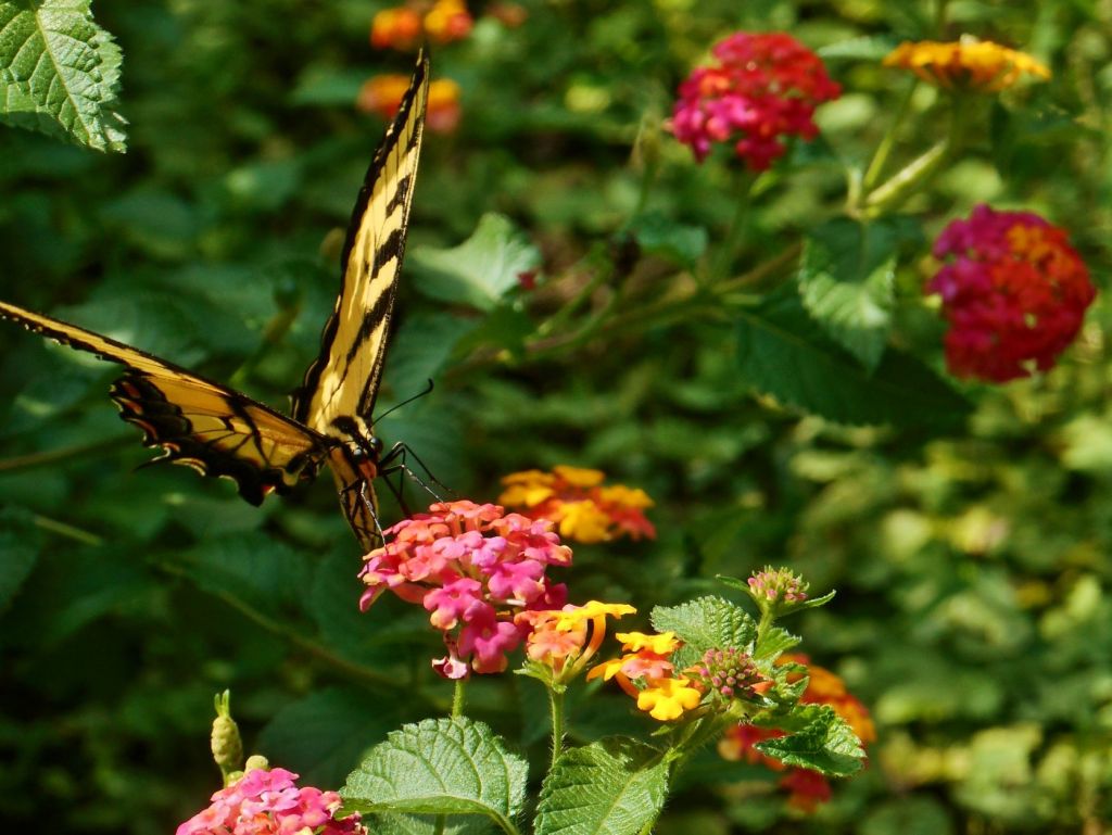 Whenever I am looking for butterflies to photograph, I begin at the Lantana or Verbenas. There may be four or five different types all feeding together along with many different types of bees and clear wing moths. Hummingbirds zoom in for a sip many times each day. Lantana not only supports pollinators, but its fruit support birds from early summer long into the winter. These are among the easiest and most entertaining plants in our garden.
