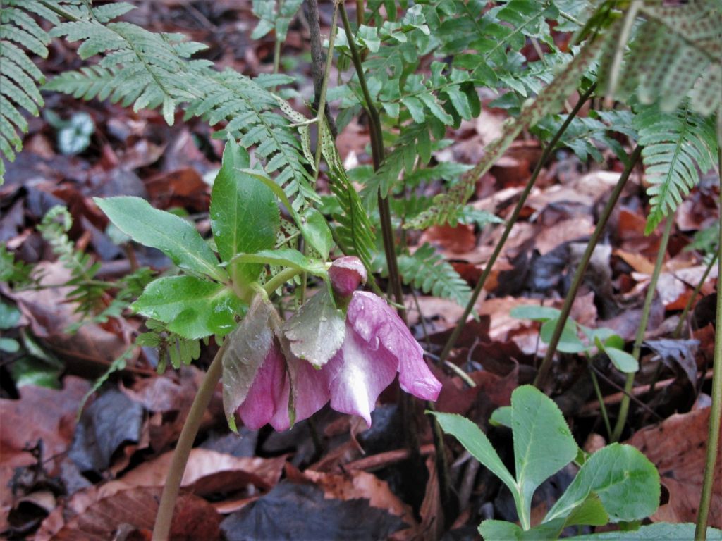 You may be lucky enough to locate H. foetidus, the bearsfoot or stinking hellebore, which has deeply divided leaves and green flowers edged in red. It is a mountain species, preferring sweet soil, and grows well in dry shade. It is taller than many other species and draws attention.
