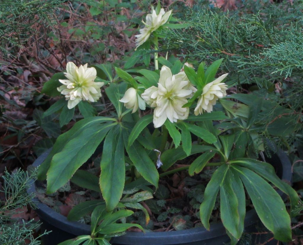 You may also plant hellebores in pots during the winter, with Violas or evergreen ferns, in full to part sun locations. Move, or transplant potted hellebores to shady areas before the middle of May, so the plant isn’t burned by the summer sun. Use a large pot, or transplant into the garden in late spring, as they resent having their roots pot bound.