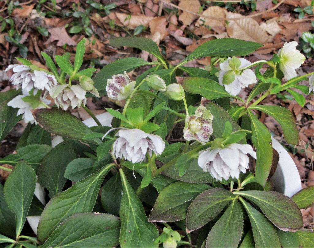 Many older homes in our neighborhood have established clumps of evergreen hellebores blooming from January through April or May. Suddenly, there are delicate pink and white petals emerging in the depths of winter. I asked a new friend about them soon after we moved to Williamsburg, and she generously gave me trays full of seedling plants when she thinned hers that spring. What a gift!