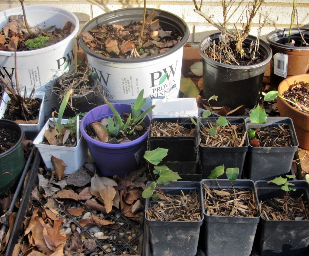 There are many more young trees and shrubs waiting for their own bit of ground. When our Edgeworthia began to decline from too much rain last summer, I struck several cuttings. Most seem to have survived and taken root. I found a stray Forsythia branch my partner had pruned and left behind in January and cut it down for cuttings, too. They are beginning to bloom in their pot. I also have a collection of rooting cuttings from the Japanese quince. They will eventually sink their new roots around that little buckeye tree. It is always good to see the seeds we plant germinate and the cuttings begin to grow.