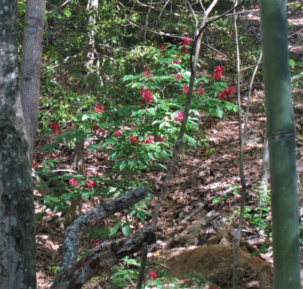 1. Oh, that really is pretty with red bloom. California buckeye is an odd one to work with in refined gardens. It is pretty for most of the time in the wild, and the bloom is nicely but mildly fragrant, but then it looks shabby by the end of summer. In landscapes, the form is appealing while bare through winter and foliated in spring, but then seems to be dead through the end of summer. A few live in our landscapes, but no more are allowed to develop. Even the mature specimens are subordinated to other more desirable trees. As much as I like them, I dislike how others perceive them to be dead.