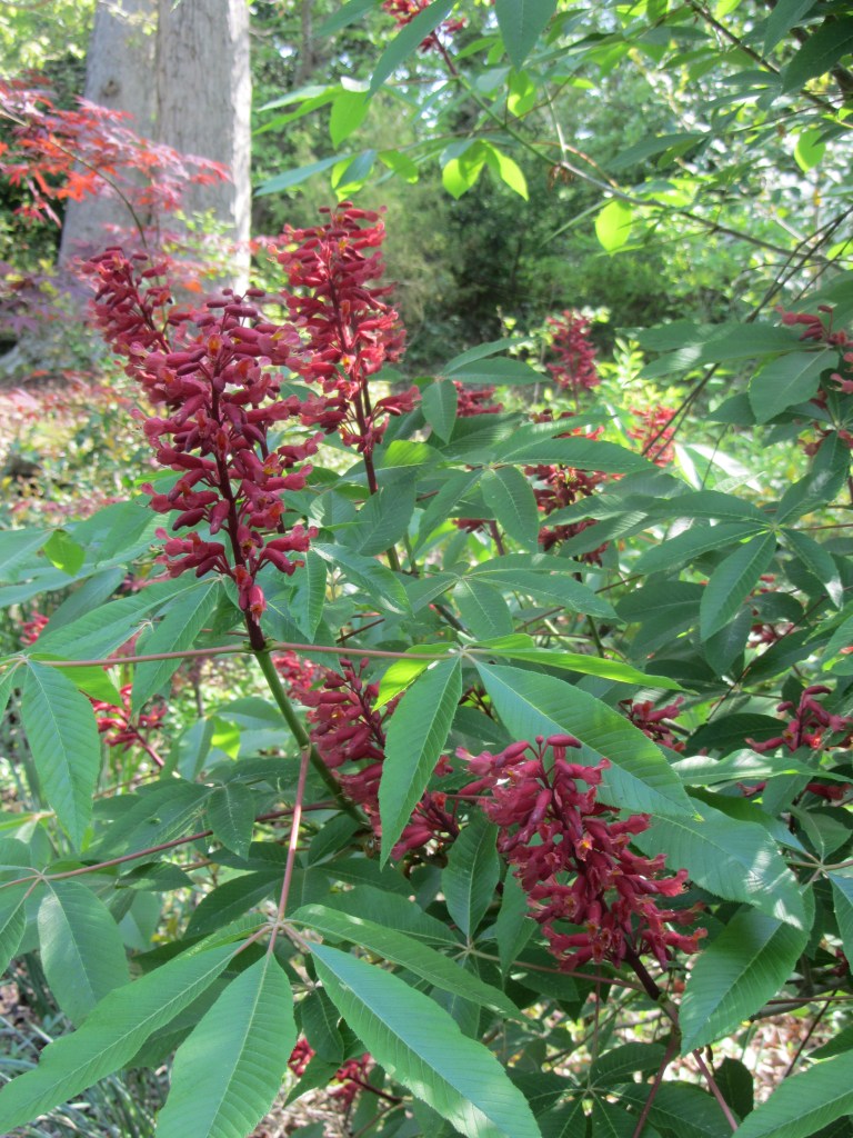 All of these Aesculus trees are highly poisonous if ingested, and so resistant to grazing.  But they are also very attractive, support wildlife, and are relatively easy to grow. You’ll find a number of named selections and cultivars on the market that make the most of their best features, including a yellow flowered Aesculus pavia var. flavens  They belong to the same Sapindaceae  family of trees as maples.