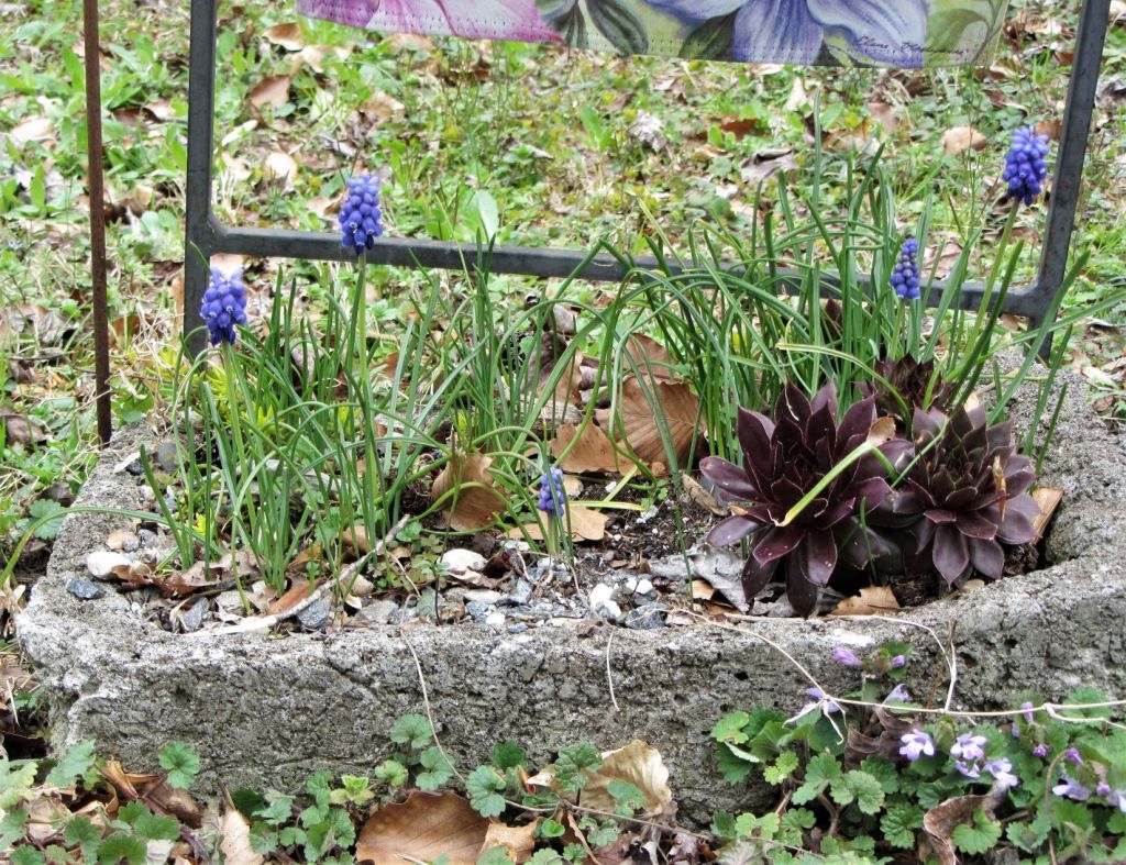 Oh, grape hyacinth! I sure hope mine proliferates. (It is a long story.) I got a few white bulbs from Tangly Cottage Gardening about a year ago. I want them to proliferate also.