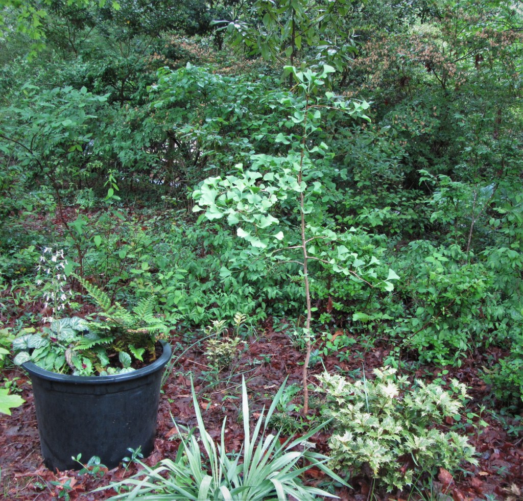 We have been celebrating Arbor Day by planting trees for the past several weeks. This little Ginko lived in a pot on our deck for several years. It was growing so large that I finally planted it in the garden in early March. The little Osmanthus were ‘liberated’ from pots recently, too.