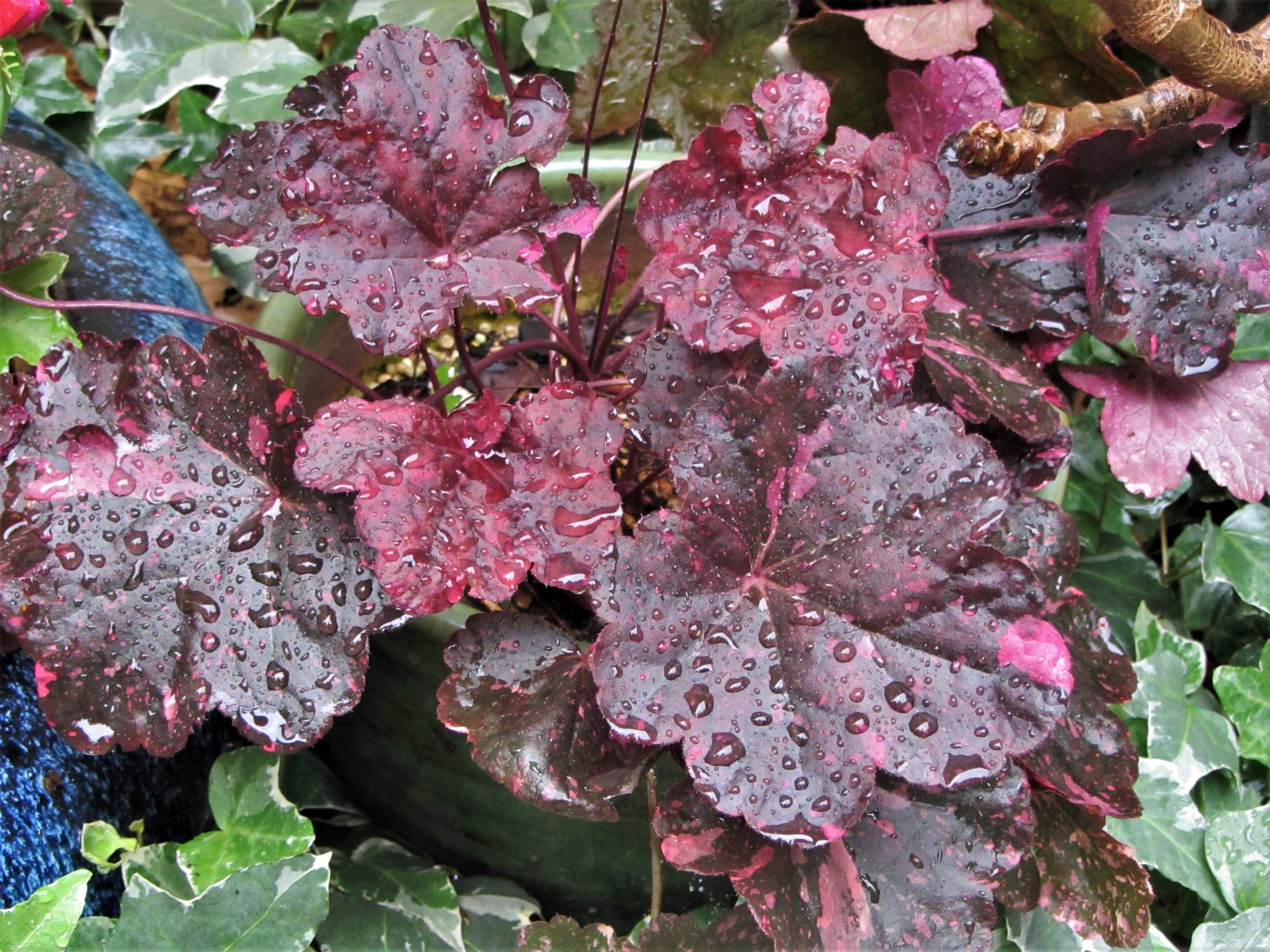 It makes sense to streamline that work as much as possible, especially during July and August. Which is one reason why I enjoy growing plants with bright and interesting leaves that last. Most flowers need dead-heading as they fade. (Isn’t that a terrible term for it?) But as beautiful as flowers may be while in bloom, most look awful on the plants as they fade. I’m thinking especially of spent geranium blossoms, here. I usually end up with a fistful of stems as I walk around watering. Neglecting those faded brown flowers looks gnarly and takes away from everything else. Clipping flowers takes time; time I’d much rather spend admiring what is growing well.