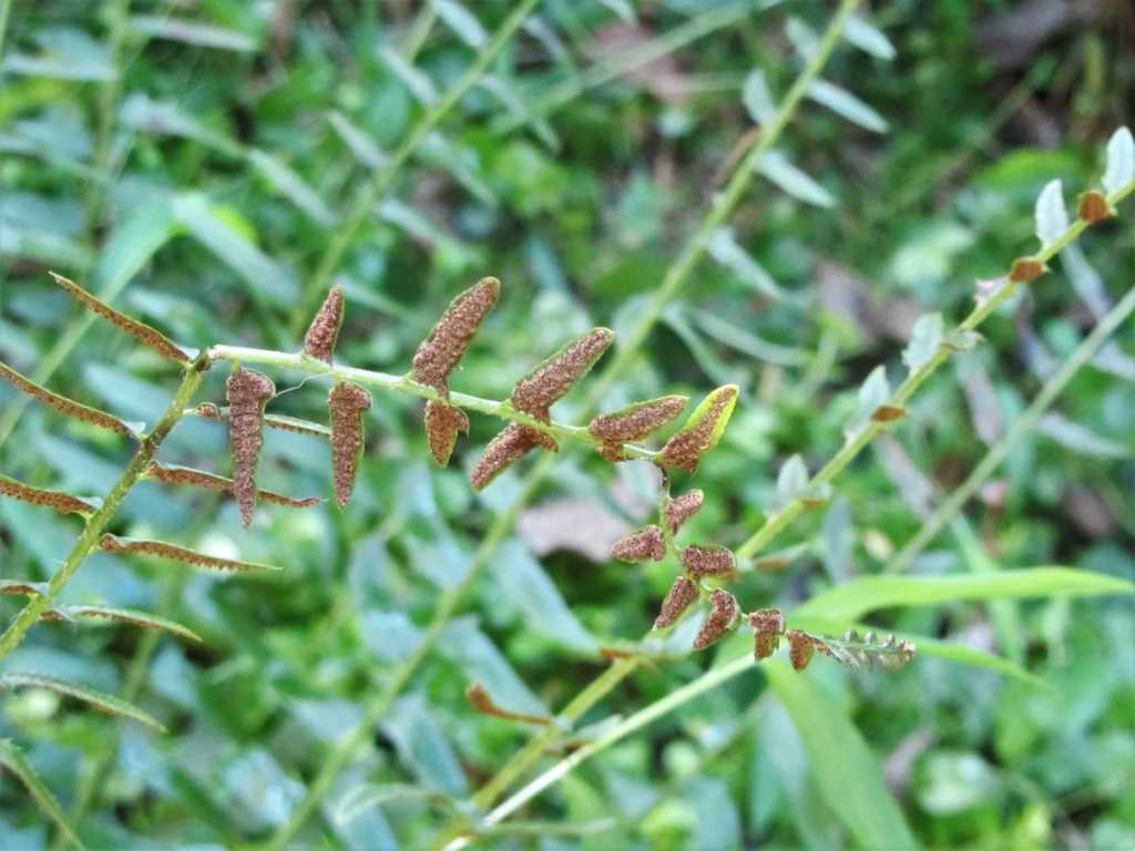 Observe the frond closely to harvest the portion with ripening, but not yet dispersed spores. Only a portion of the frond is necessary. Each sporangia contains many spores, and a single pinnule may have many sporangia on its underside. Remove the pinnules with ripening spores and drop them in an envelope, or on a sheet of plain white paper. A find dust will collect within a few days, and the spores are in that dust.