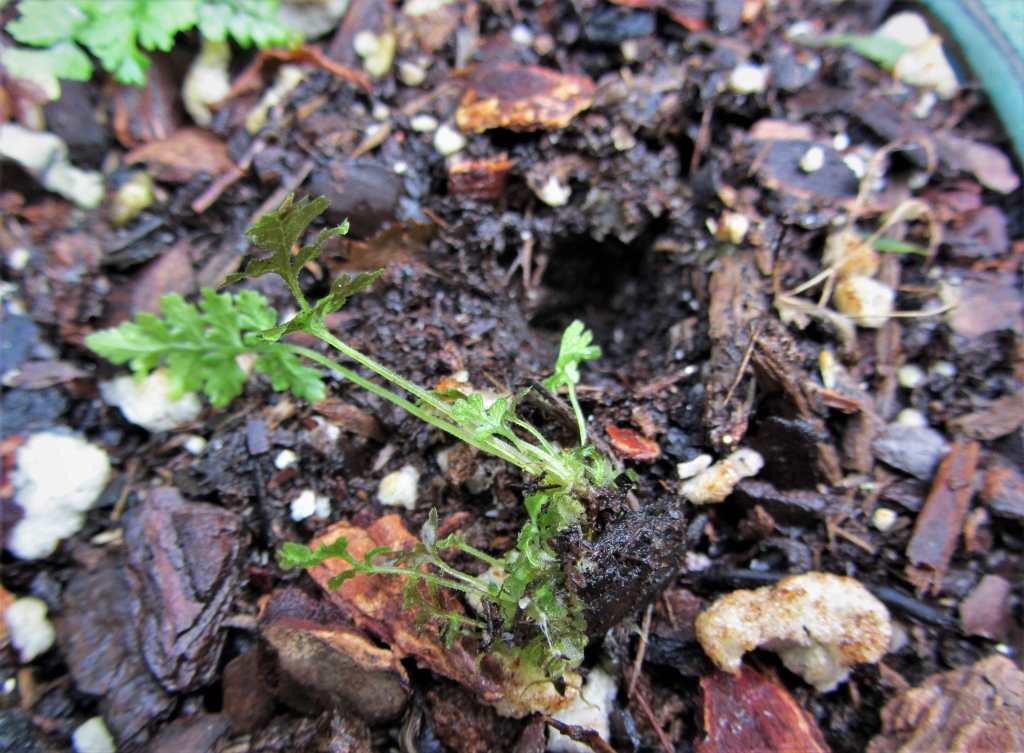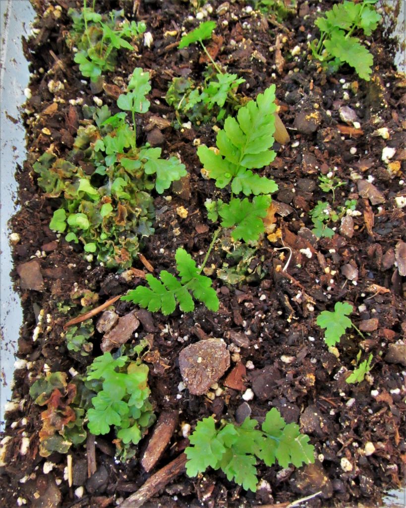 Transplanting a sporeling too soon can be fatal. Waiting too long makes for a very tight, crowded mass of tiny plants. To further complicate things, each tiny fern is developing on its own schedule. They won’t all develop to a size to transplant at once. If kept indoors, they need to be under lights. If kept outdoors, they need protection from insects, animals, and extremes in weather.