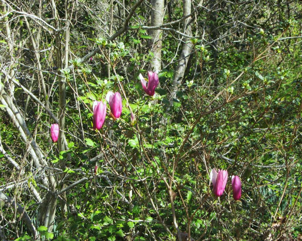 I’ve taken several hundred photos this week, so choosing six for today may be tougher than usual. Flowering trees, bulbs, perennials and ferns are coming along so fast now that it is a challenge to document the daily changes. There was frost on the roof Friday morning before the sun rose. We awakened this morning to temperatures in the 60s and heavy rain, a gale warning, and we expect areas around us to freeze tonight. We will be right on the line so fingers and toes are crossed that the trees won’t suffer damage.