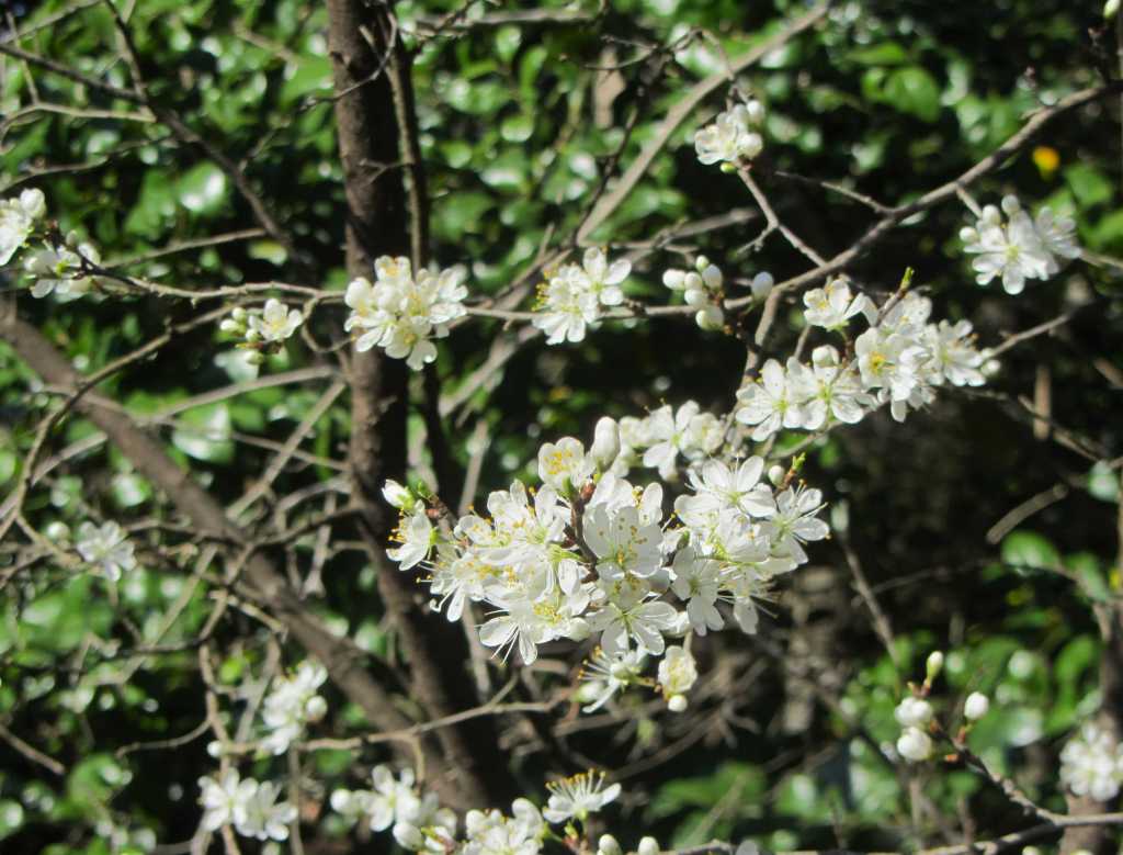After all these years, I’m not certain about this tree, but believe it is a plum tree. It is a member of the Rosaceae family, which is also the family of cherry, pear, and apple trees. It is a treat when it blooms in our side yard each spring, and it has allowed me to produce several clones from cuttings.