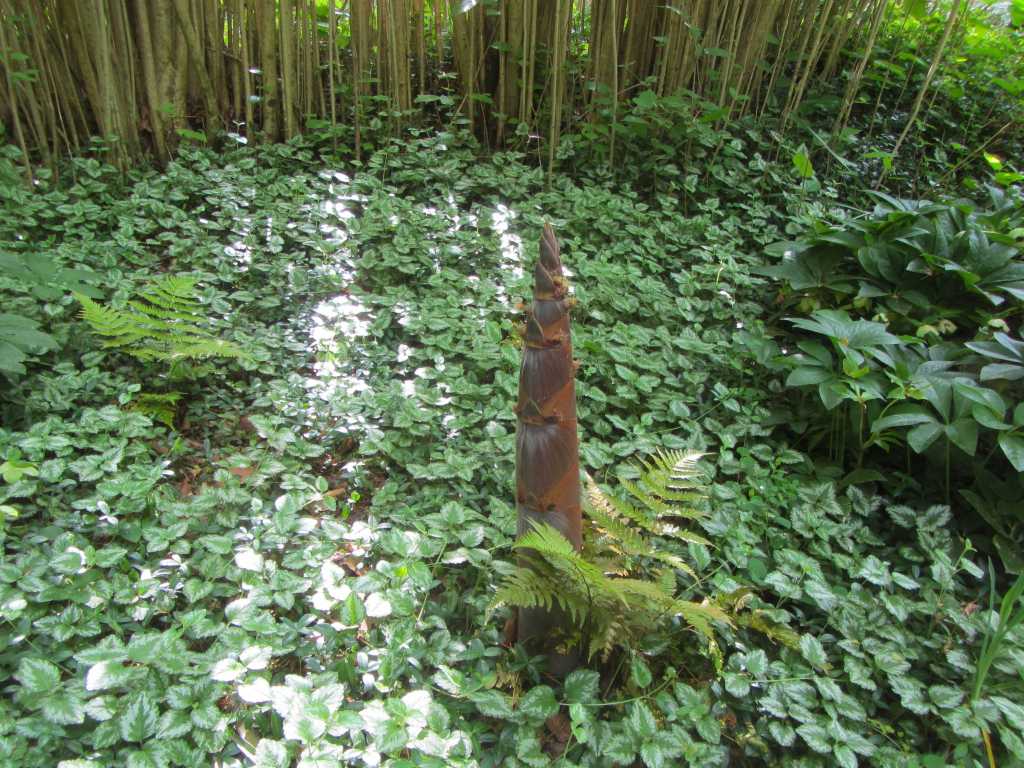 We are always amazed at how fast the bamboo grows. We try to hunt for new bamboo shoots daily in early May, but if we get busy and miss a day, we are greeted with huge shoots emerging in very unexpected places! They have emerged closer to our home this year than ever before, having succeeded in climbing the hill that is our back yard.