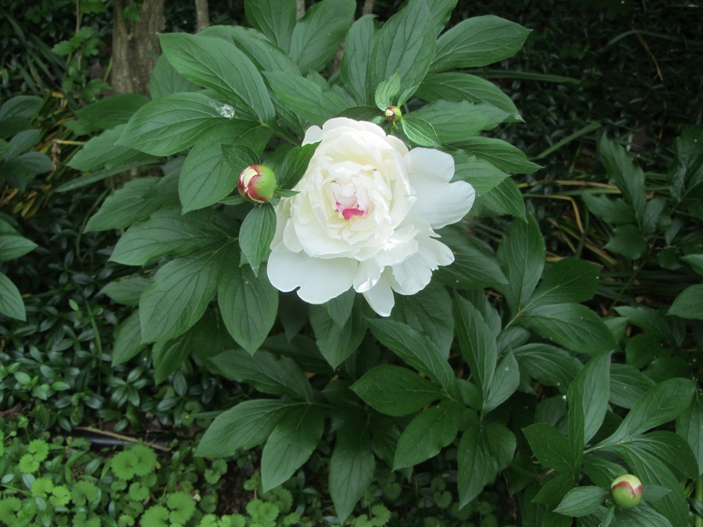 The peonies were already growing here when we arrived, and surprise us with their beauty each spring. They are very persistent and long-lived, even though they are now in a bit too much shade as the shrubs have grown behind them. A neighbor gave me peony divisions a few years ago and I have them growing in a bit more sun in other areas, but they aren’t yet in bloom.