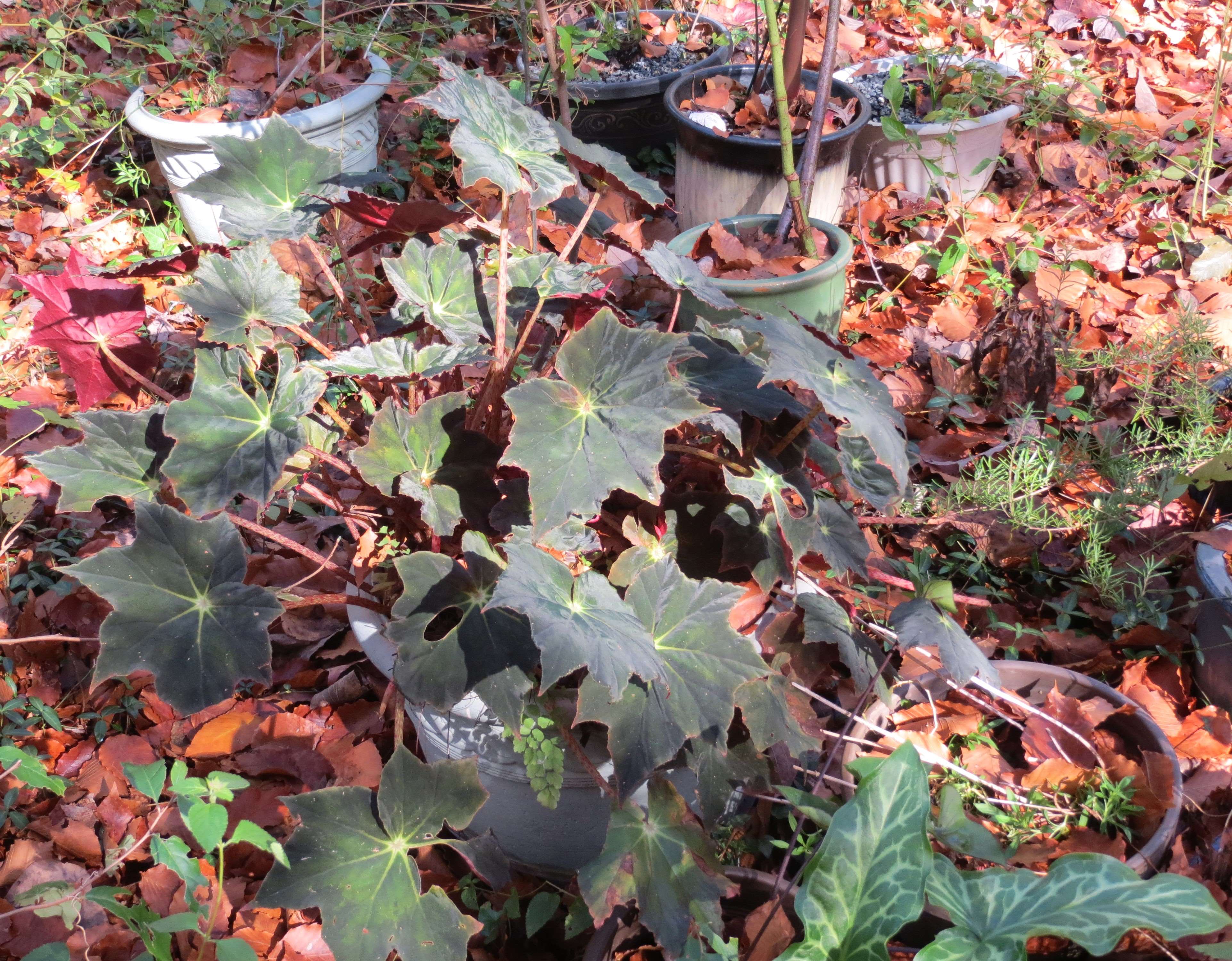 This begonia was not my idea. Actually, I was not so keen on it because it is a modern cultivar. The other horticulturist here got it because of its name. He purchased it in Santa Cruz, and we are in Santa Cruz County. I only learned to like it as it grew and bloomed here, and actually, I prefer it to ‘Santa Barbara’ which blooms with white flowers.
