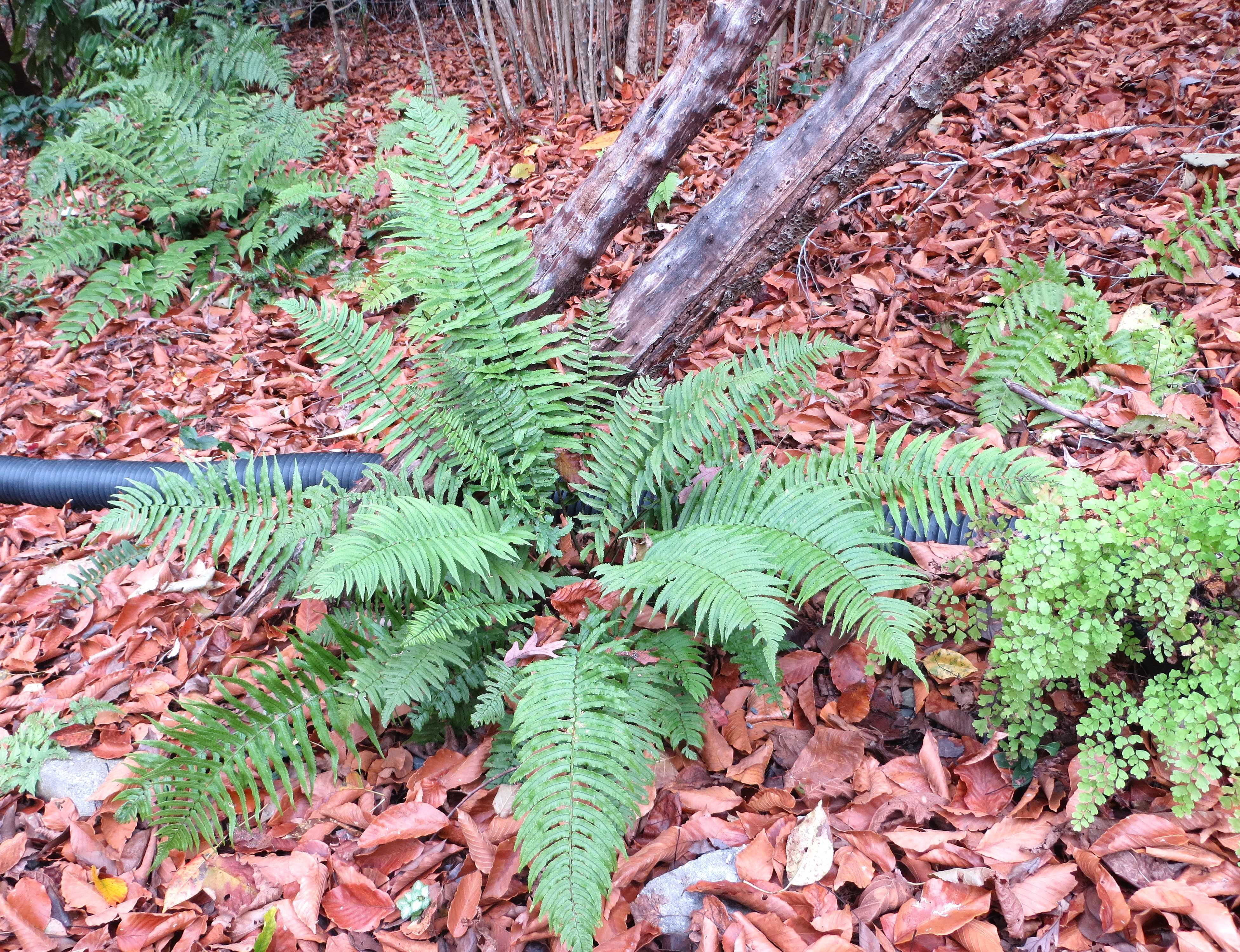 Some days I thought it was a Dryopteris, others a Cyrtomium. I couldn’t quite nail the genus, species, or common name in any of the resources I regularly consult. It was an outlier. Finally, I searched online for ‘ferns with black stipes.’ The images finally convinced me this had to be a Dryopteris. A further search for ‘Dryopteris with black stipes’ finally showed me to a page with a photo of a fiddlehead and unfurling frond. Dryopteris cycadina shaggy wood fern.