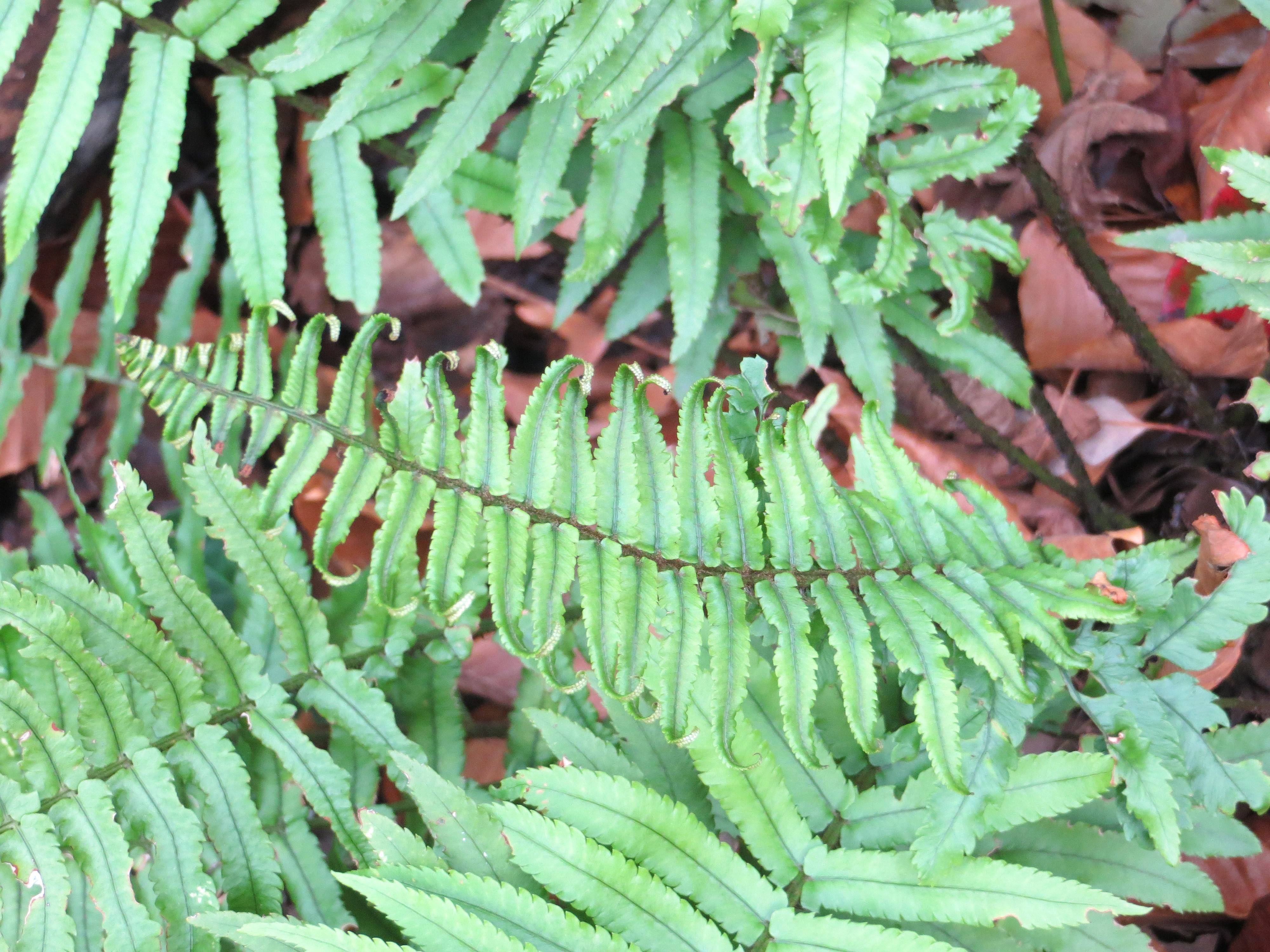 I have also been patiently, persistently, trying to track down the proper name of a fern I planted without leaving a tag beside it a few years ago. I can’t quite remember whether I ordered the fern or purchased it locally. But it is highly unusual, with black hairs along its stipe and covering its fiddleheads. Its leathery fronds are long and glossy green. I used a photo of it taken last April in my 2025 garden calendar, and published the photo without any more identification than, ’emerging fiddleheads’ That was embarrassingly lame, but the best I could muster.