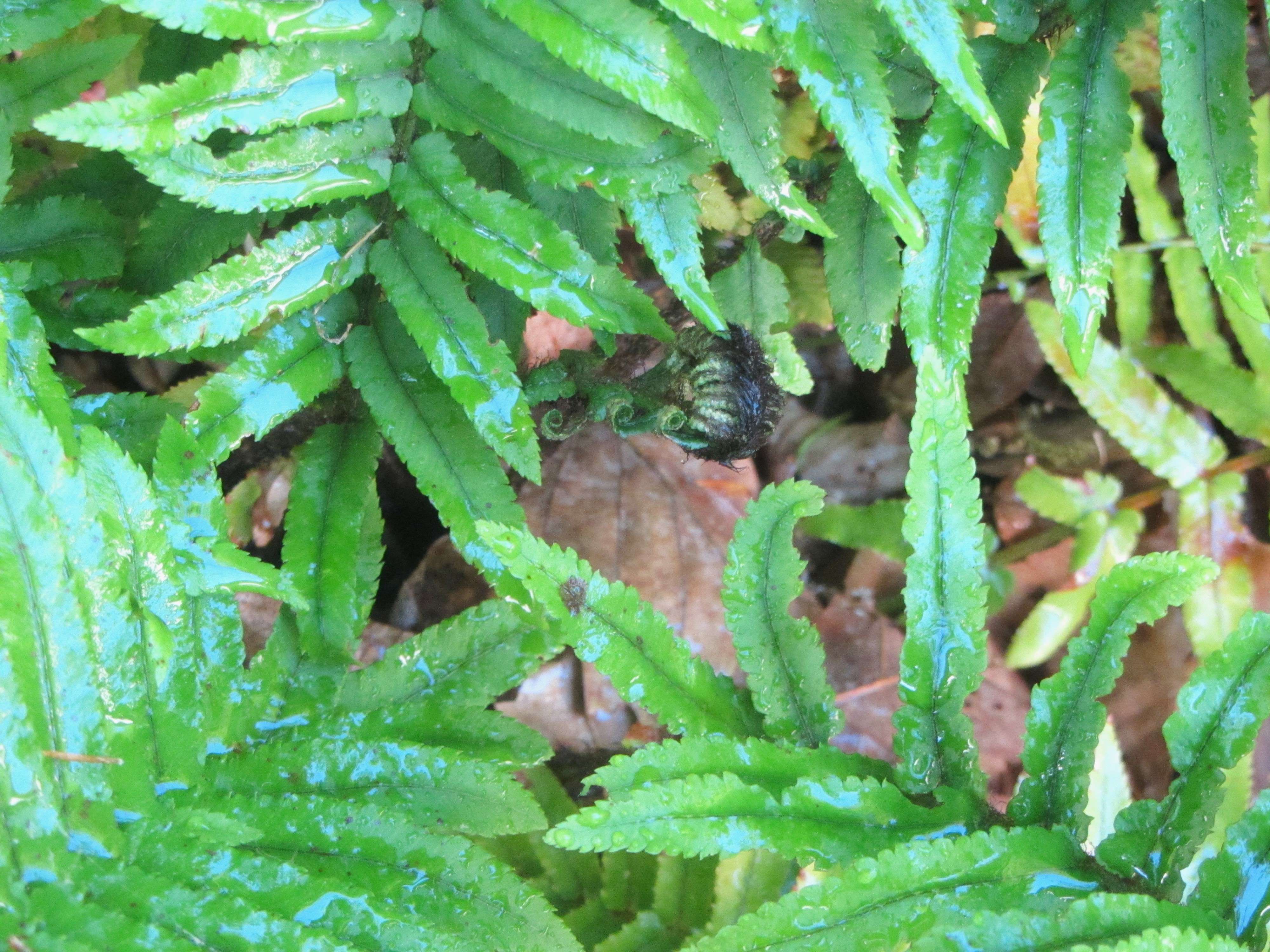 And yes, good things can happen at the conclusion of patient yet mindful waiting, which I have richly experienced this week. It rained. After more than 40 dry days, we enjoyed loud, exuberant rain pounding on the roof and running through the gutters from Wednesday afternoon until Thursday morning. We received about 2″ of rain, and a walk through the garden shows the beneficial effects of this long and steady rain. The ground feels soft again, the moss springy, and everything is wet. Now the season will proceed in ease and grace as bulbs awaken and grow, evergreen ferns survive into the winter, and trees sport their vibrant colors before all the leaves blow down. And there is more rain coming next week, so the weather pattern has shifted.