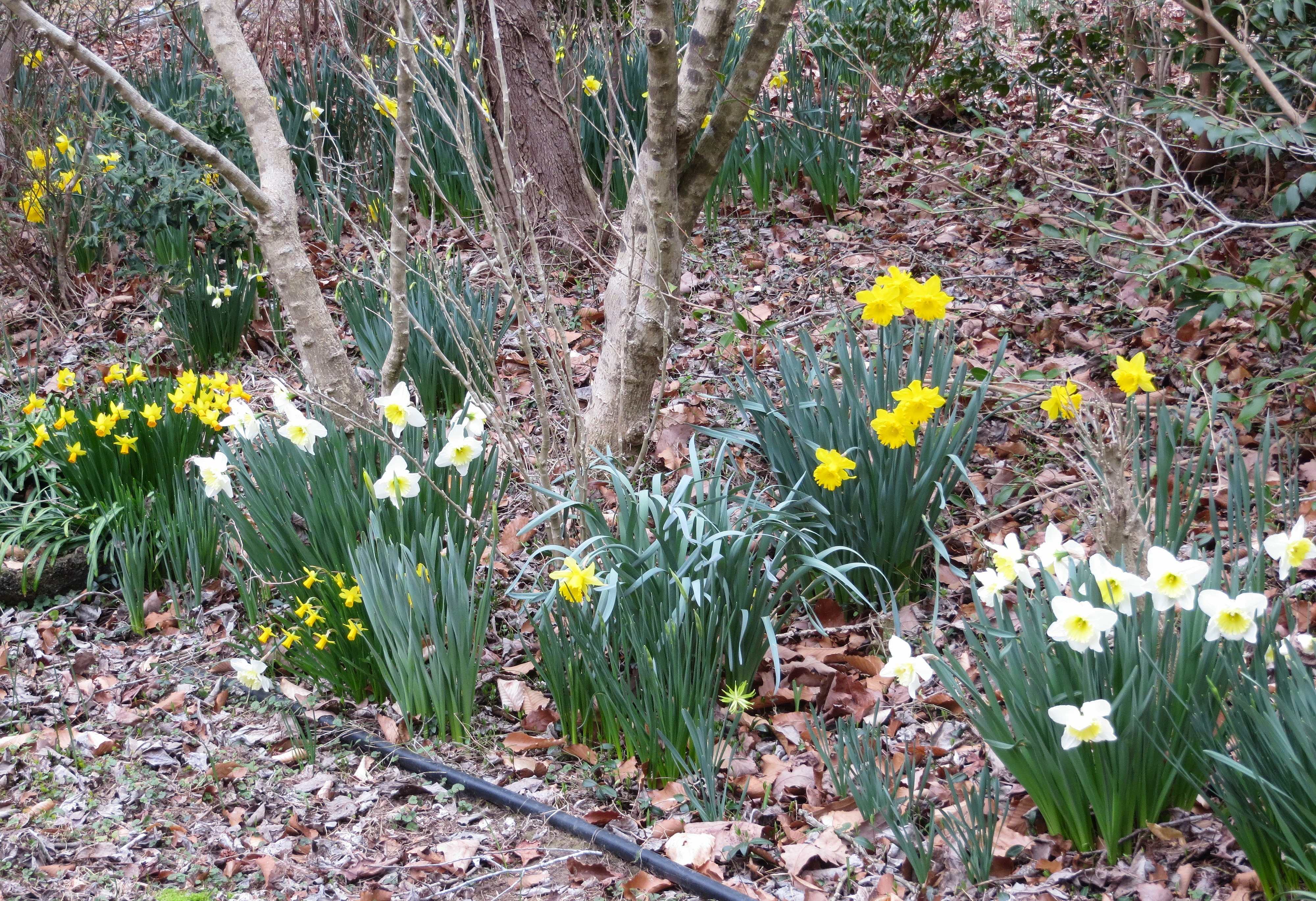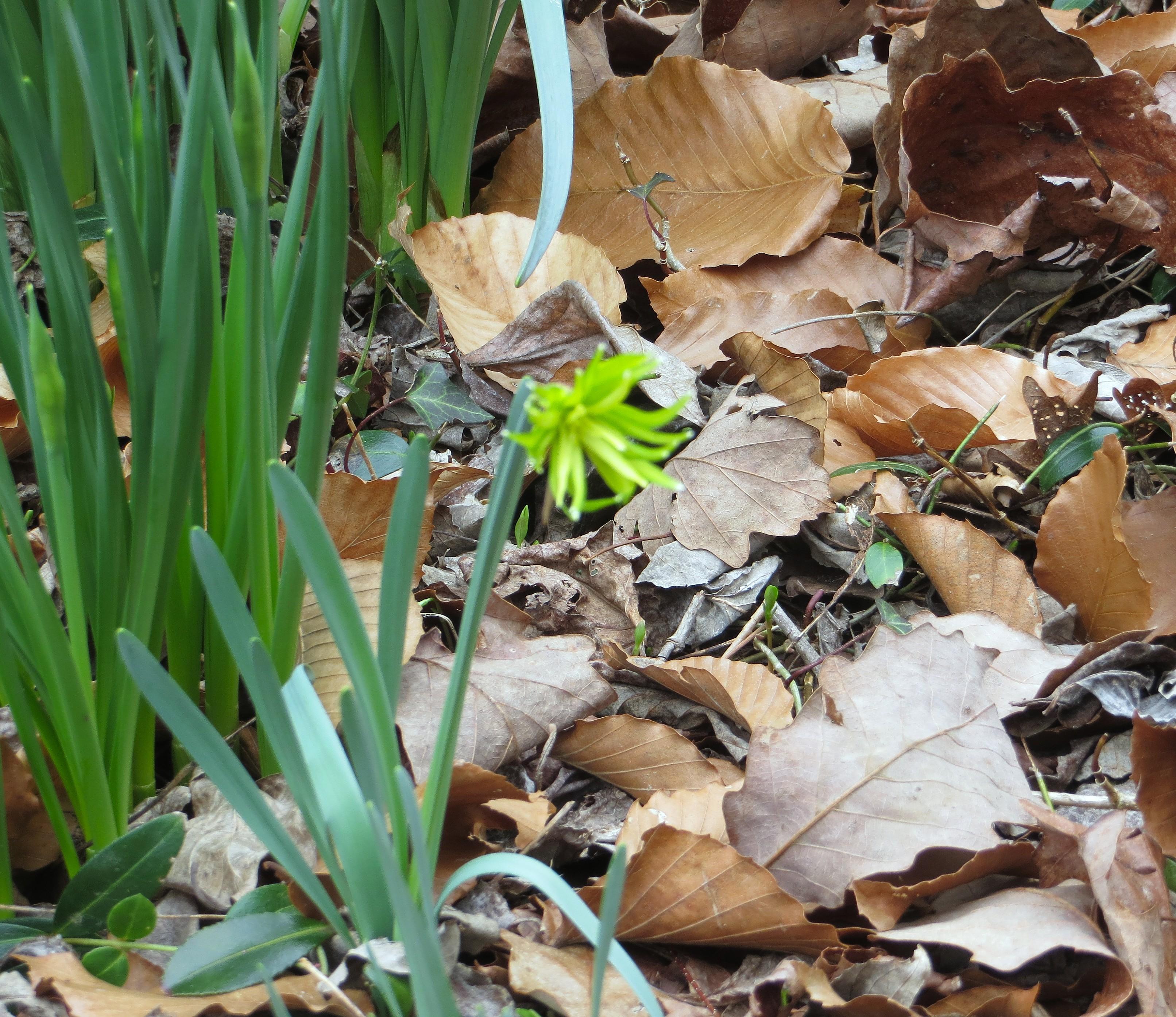 An unusual flower bloomed in a border where I have planted miniature Narcissus over the years. But I certainly don’t recognize it as something I chose, purchased and planted. It is enough of a mystery flower that I reached out to Brent Heath, our local Narcissus specialist based in Gloucester to ask him whether he recognizes it. The closest Narcissus with this sort of appearance is one known as N. ‘Rip van Winkle.’ But that one is much more golden, and with wider petals. So I hope that he finds time to reply and can perhaps shed some light on this flower.
