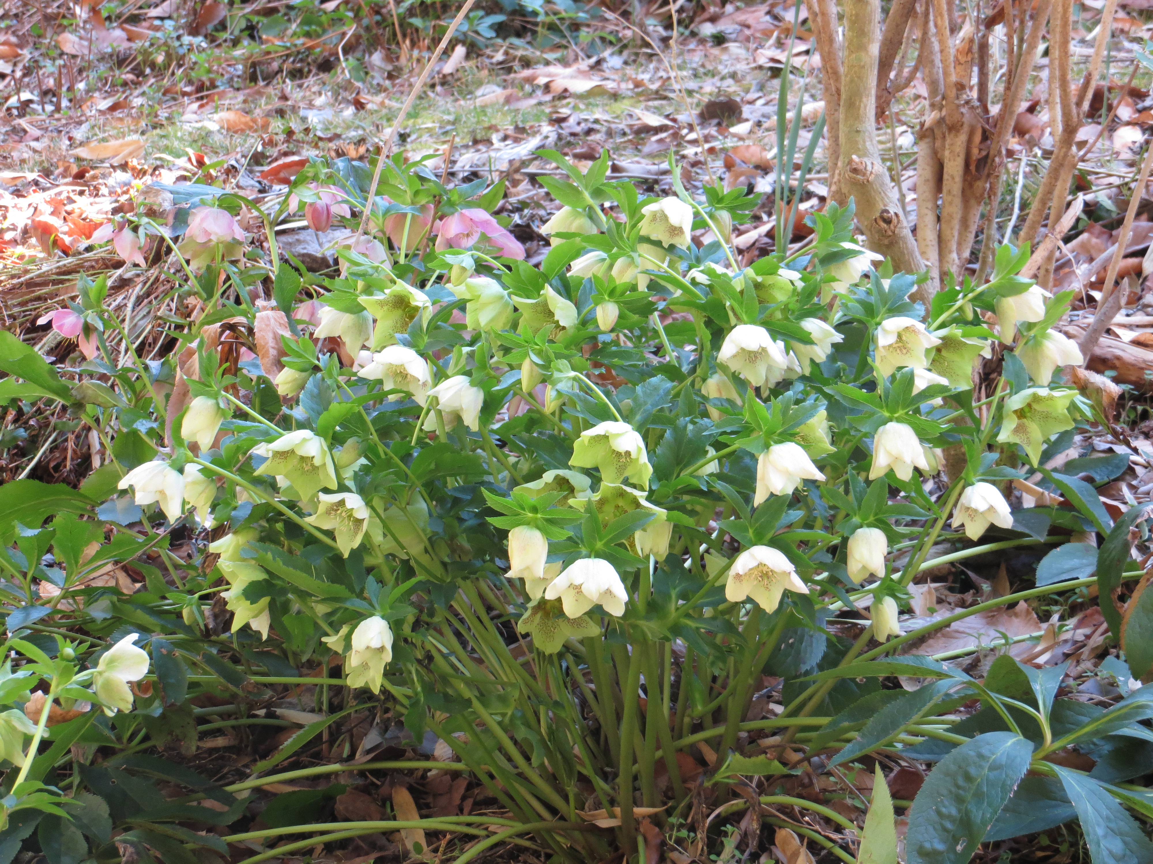 I finally found a patch of Siberian squill yesterday, poking up through the lamb’s ears. They looked rather ragged. It was only earlier this week that we noticed a few bees buzzing around in the garden. But the Hellebores and Narcissus are gorgeous this year. We are enjoying watching the Hellebores pop open to see their color and form. I’ve been moving around seedlings in recent years, establishing Hellebores in new areas of the garden, and so some plants are blooming for the first time in deep rose, creamy white, and delicate shades of pink.