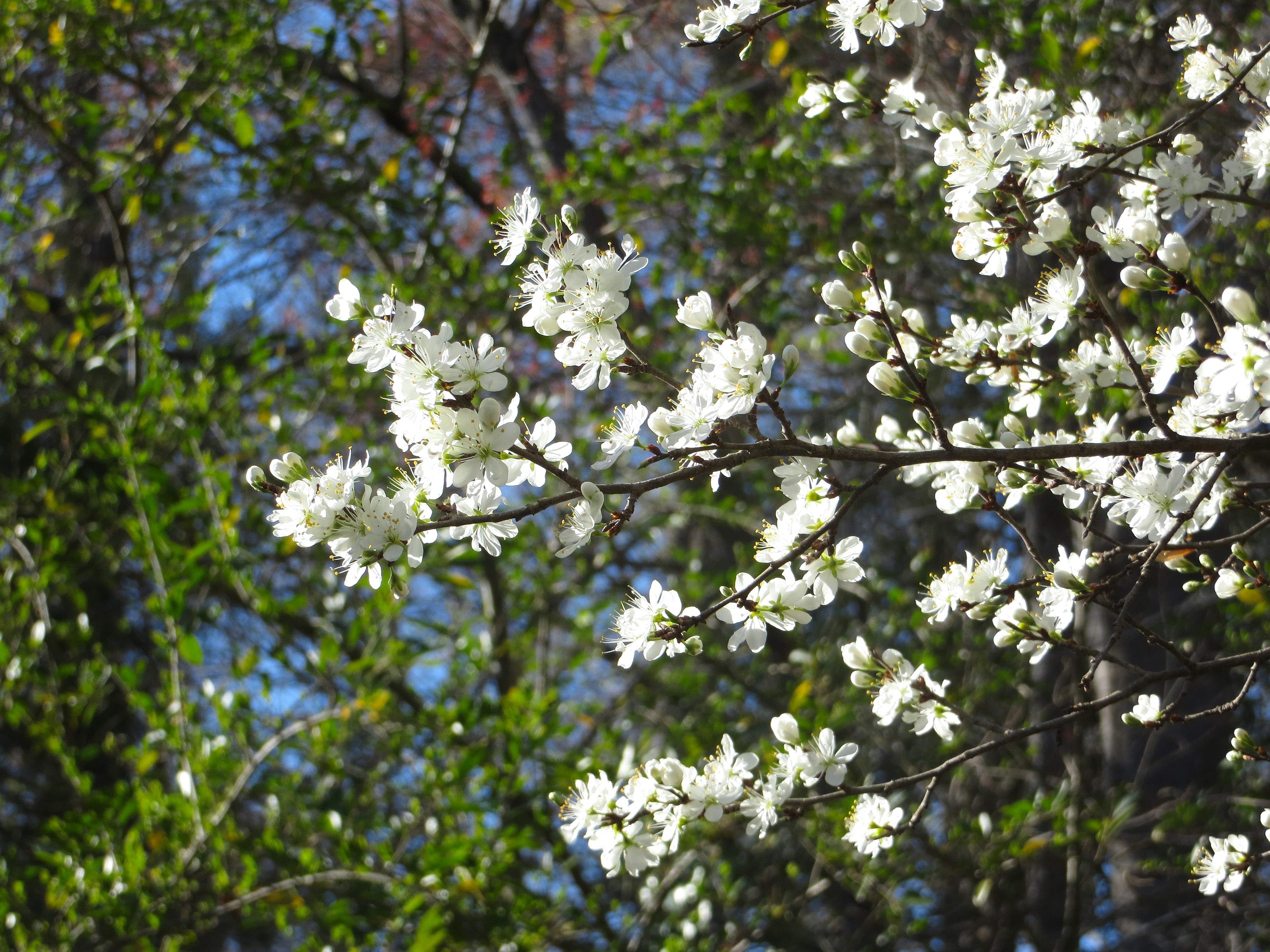 Last Saturday morning I went outside to take a few more photos of our ferns before publishing ‘Six on Saturday.’ When I went back to those same ferns later in the afternoon, I was astounded to realize those fronds, just beginning to unfurl in the morning, were already several inches taller. This week I’ve been watching the buds swell on a Prunus of unknown species which blooms in our side yard each spring. Its cloud of tiny, perfect white flowers is always a highlight of spring for us here. And after days and days of watching its buds swell it finally bloomed on Thursday.