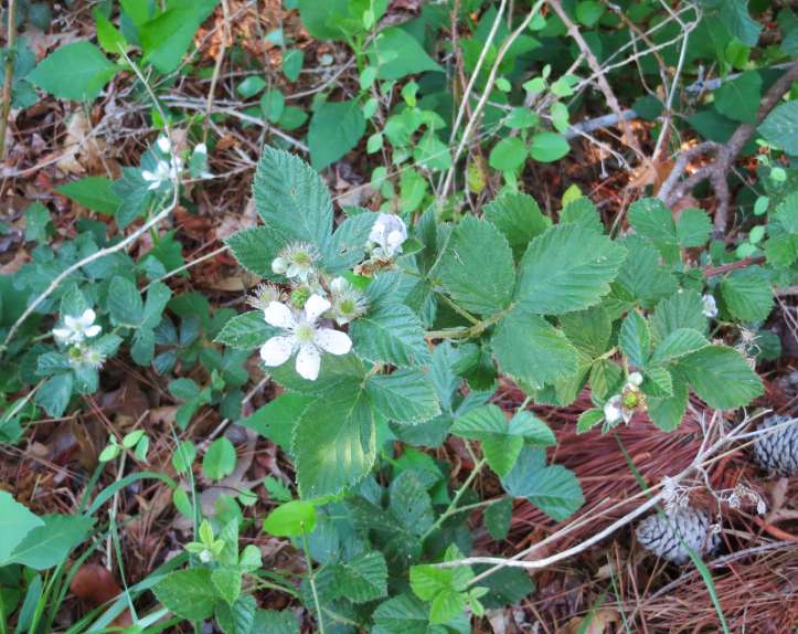 Blackberry shrubs bloom and may and bear tasty fruit later in the summer.