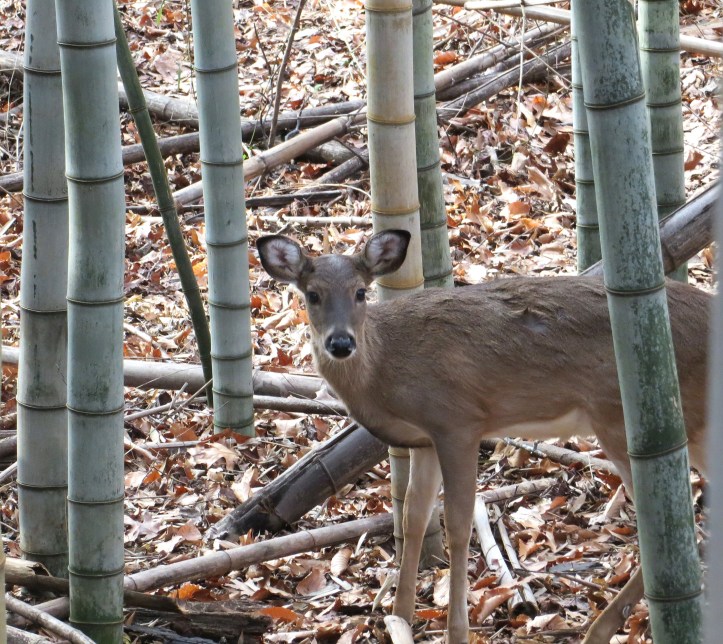 Oh how fun! Ir’s always a joy in the garden when the Hellebores bloom! The one you shared is a lovely light pink! The Camellia is gorgeous, too. Great capture of the deer!