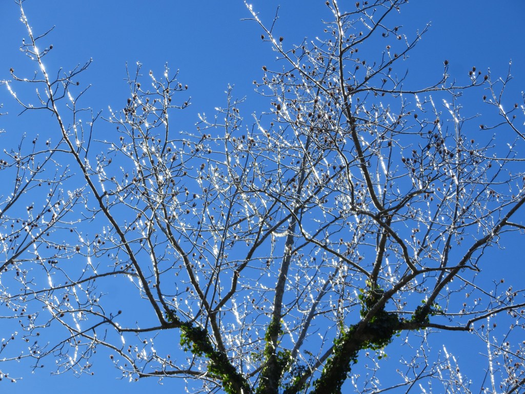 Goodness, that weather has been in the news. It has been unseasonably warm here, and some fruit trees are blooming prematurely, which could be bad when the rain resumes and dislodges the developing fruit. Ice in the trees sounds much more dreadful though.