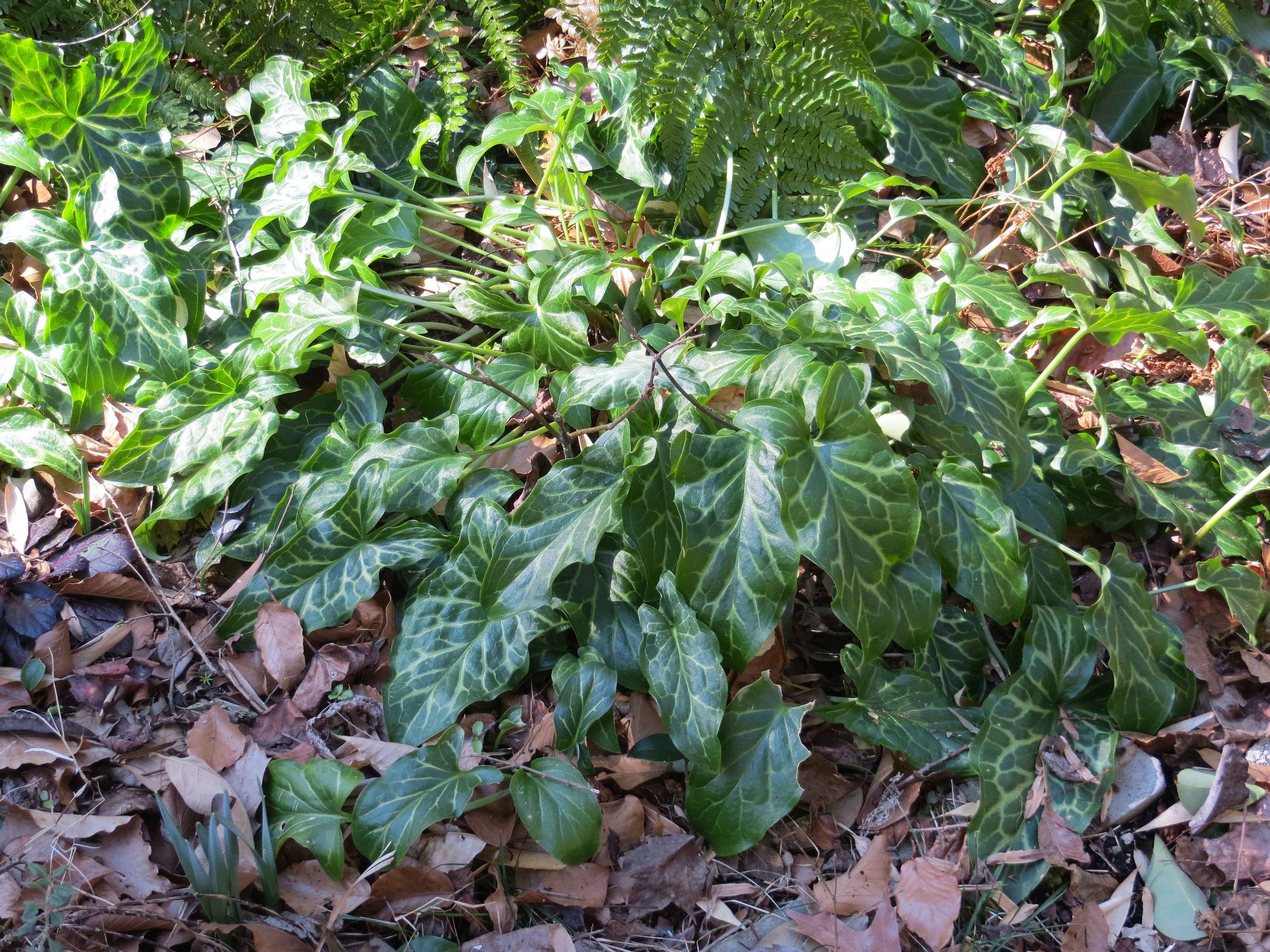 Arum italicum is on the noxious weed list in Washington State, which is a darn shame, because it popped up in my garden as soon as I cleared ground in 2010. I love the marbled leaves and am halfhearted in trying to get rid of it. I do try! Vinca major and minor are both on the monitor list here, and I have seen it spreading across the entirety of a wooded lot next door to a garden we cared for. I have it also, in a contained area between house and concrete path, where it had been planted by previous homeowner. I keep thinking I will remove it and yet I am sure it is rooted under the house and will reappear, and I just don’t get around to the task. Some of it is a very pretty variegated form.