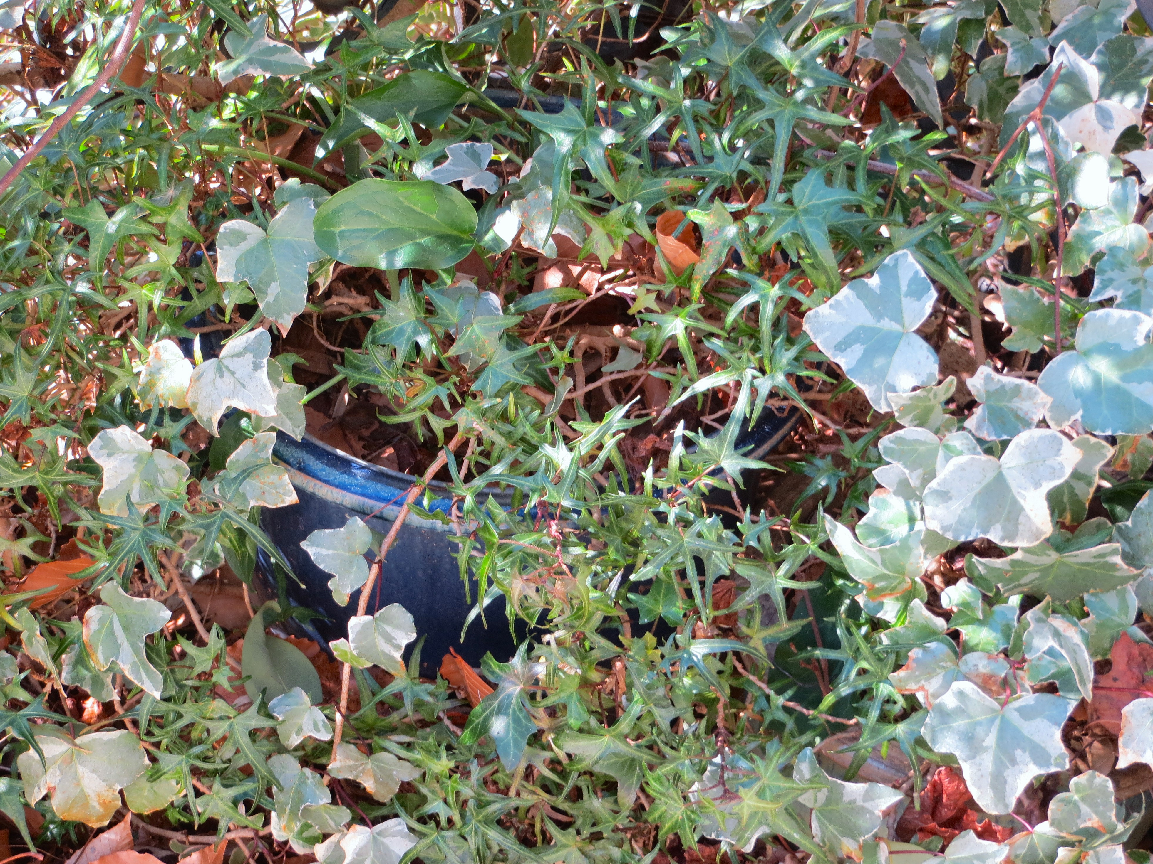 Much of our periwinkle still slumbers under a blanket of fallen leaves like the ivy. Ivy is another tenacious evergreen vine that continues to live, sequestering carbon and cleaning the air, while bringing color to the winter garden. It is also a European vine brought to the American colonies by the colonists that is now considered invasive, despite its beauty and usefulness. Many different cultivars are available with various leaf sizes, shapes, and patterns of coloration.